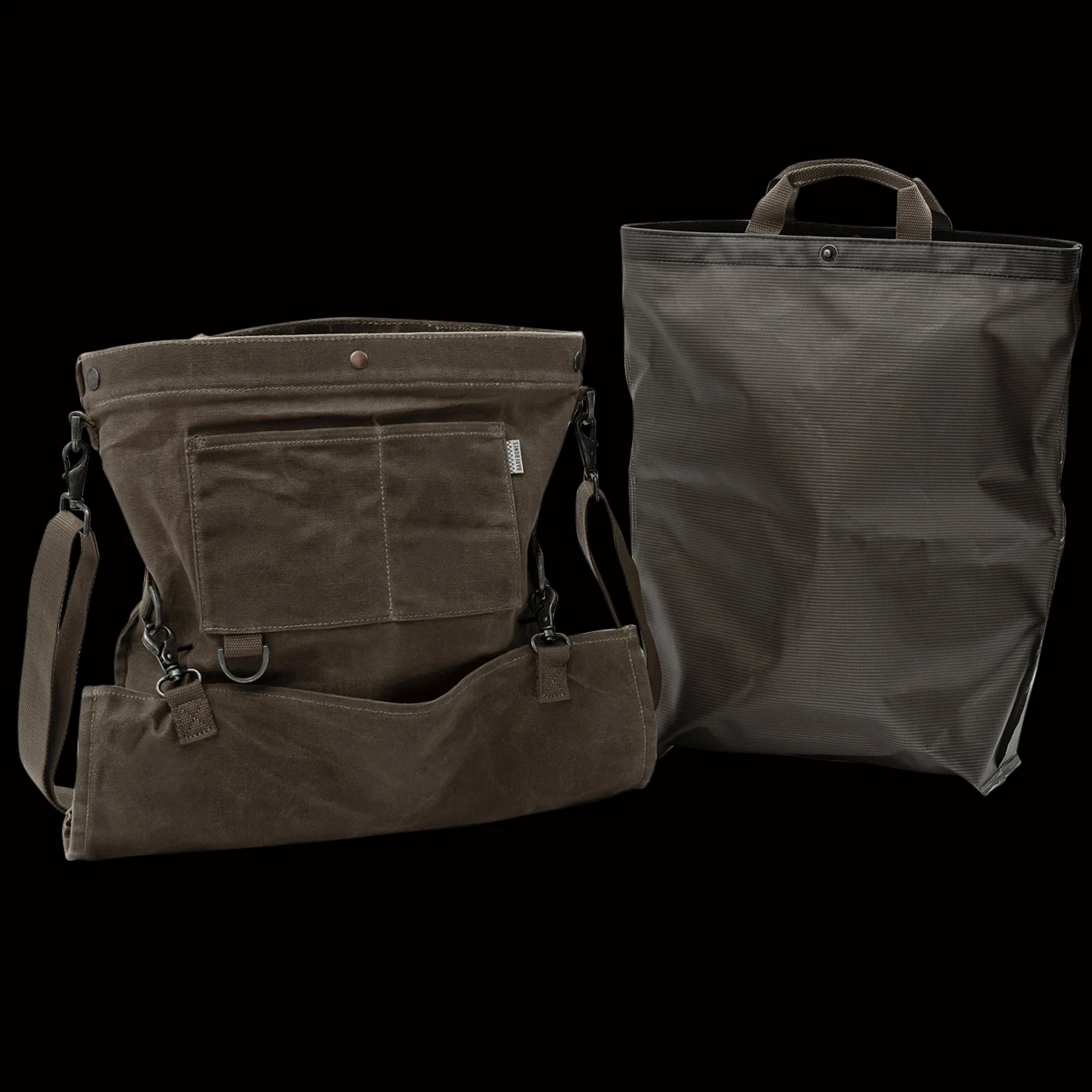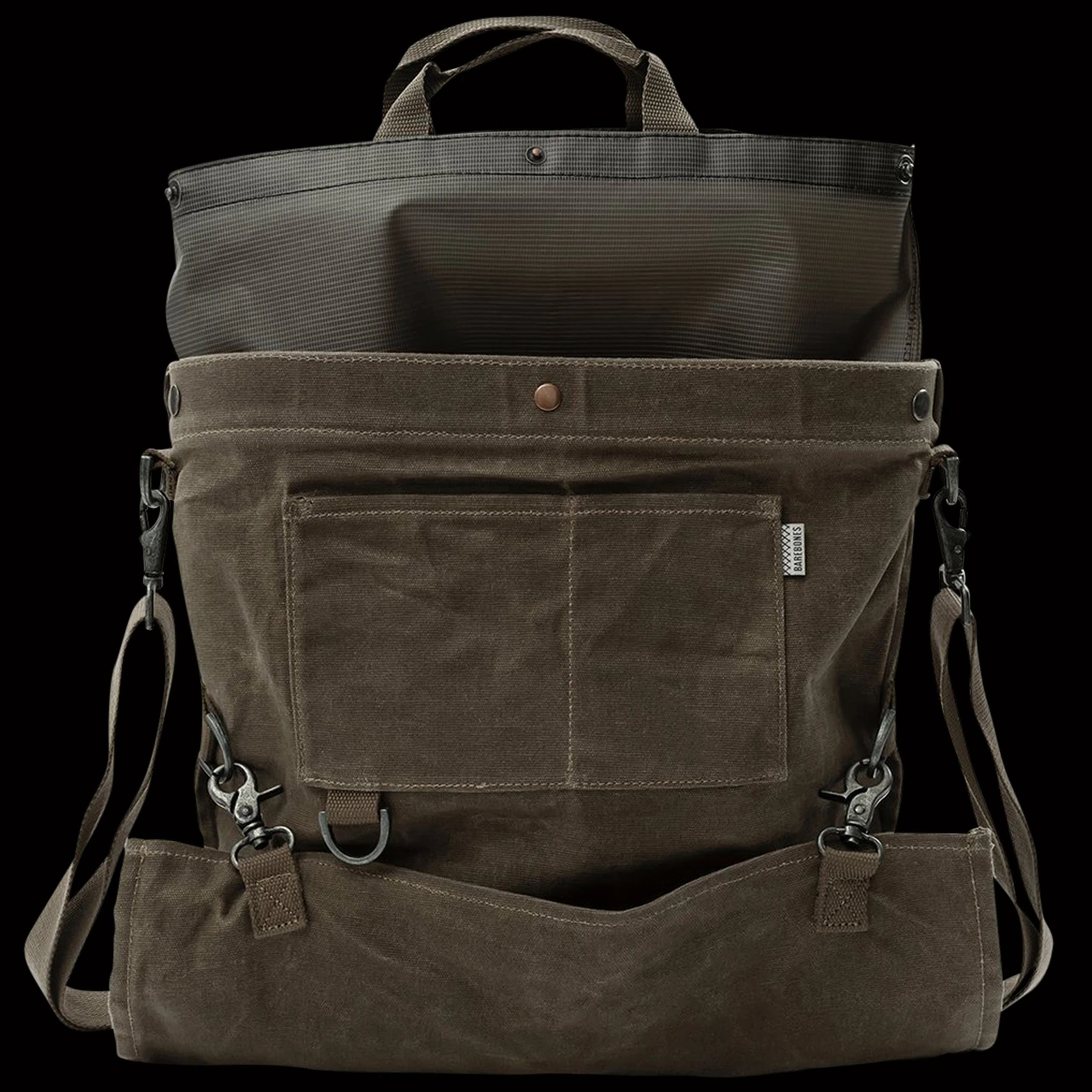 Inspired by vintage orchard design, and supremely useful around the camp, the Barebones Gathering Bag offers versatility in use, wearing, emptying and care. Its convertible straps allow for comfortable chest or back carrying, while its drop-out bottom makes quick work of emptying the harvest. Constructed of weather- and water-resistant paraffin waxed canvas and complete with a watertight removable liner, the Gathering Bag is the essential foraging and harvesting partner.