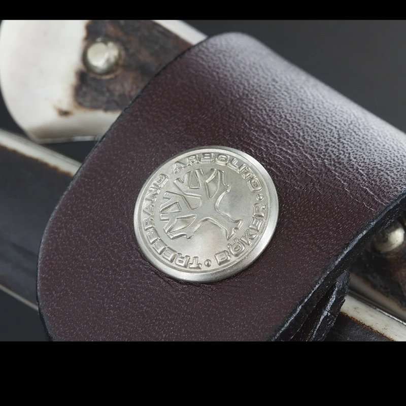 This is no ordinary picnic tool however. Both the fork and knife have stag handle scales with a full tang and rivet construction. The knife blade is as sharp as a standard Boker fixed blade knife and made from 440 stainless steel. Ideal for a steak!