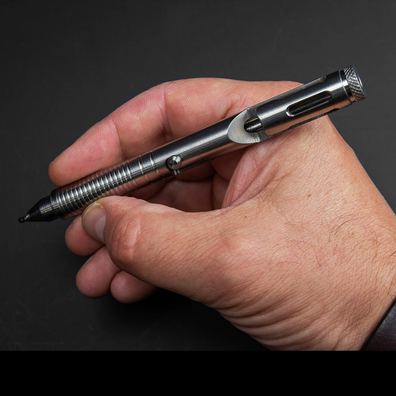 The CID cal.45 is a tactical pen that sets new standards in design and technology and is now available with a tough and attractive titanium body. It was conceived by Rainer Wenning, who has developed the Boker Pocket Sticks SO4PRO-K, and the knife maker Thomas Braunagel (BFK).