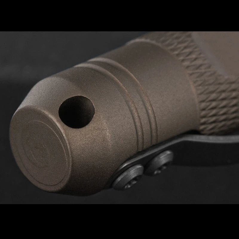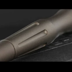 This is a handsome tactical pen compatible with Parker style or Fisher Space Pen refills. It has a milled aluminium body in a flat dark earth colour with Boker Plus engraving. The pocket clip provides one means of carry and the cap has a lanyard hole for transportation around your neck.