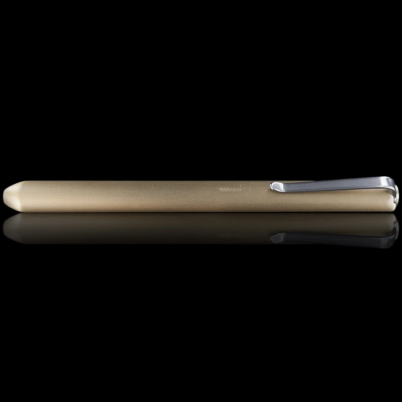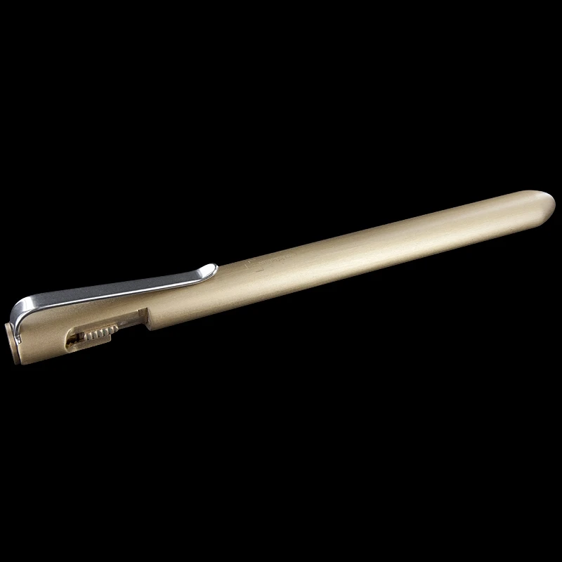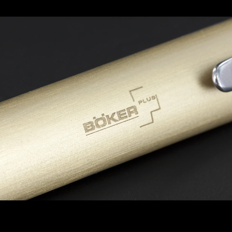 Darriel Caston’s love of exotic materials is being showcased in his design for Boker. With this solid brass pen, Boker are offering an exceptional writing tool. The relatively high specific weight of brass lends this tool a completely different feel than the usual aluminium. The patina that develops on brass with time and use gives the pen a certain vintage appeal. The easy-glide bayonet mechanism enhances the joy of writing with and using this pen. You’ll not be able to put it down. It is compatible with a Fisher Space Pen and a standard Parker-style refill. To change refill loosen the T8 Torx screw at the end of the handle.