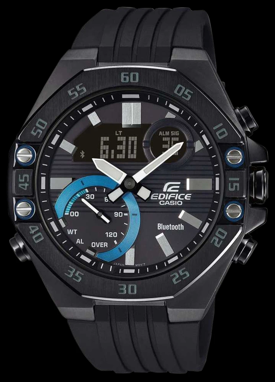 ECB-10 Series timepieces were developed in consultation with racing team members. They use Bluetooth to link with a smartphone for minute-by-minute coordination of daily schedules among team members, and Auto Time Zone updating that ensures timekeeping is current and accurate no matter where in the world you happen to be.