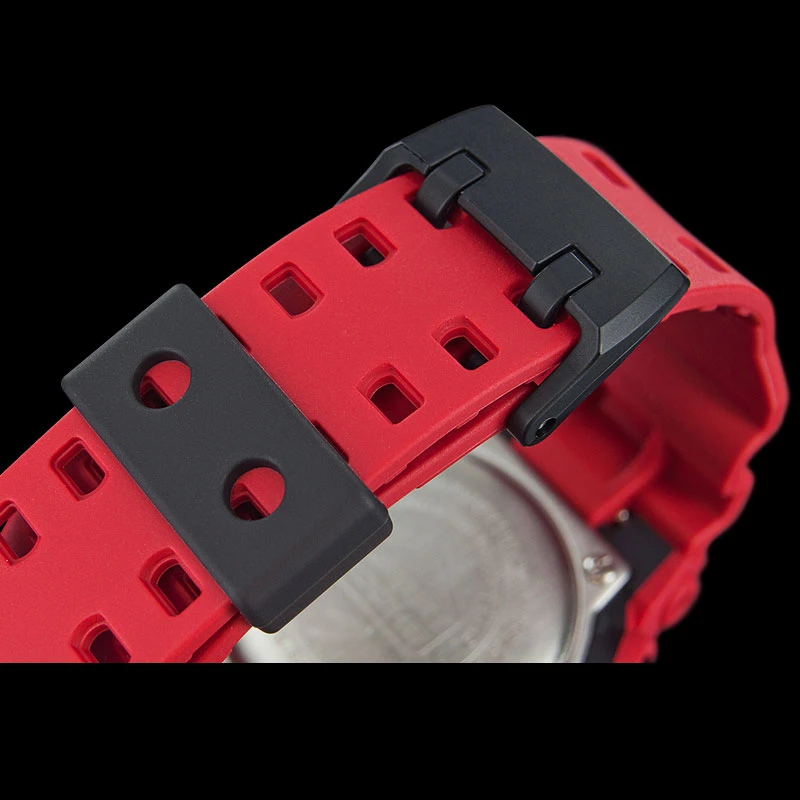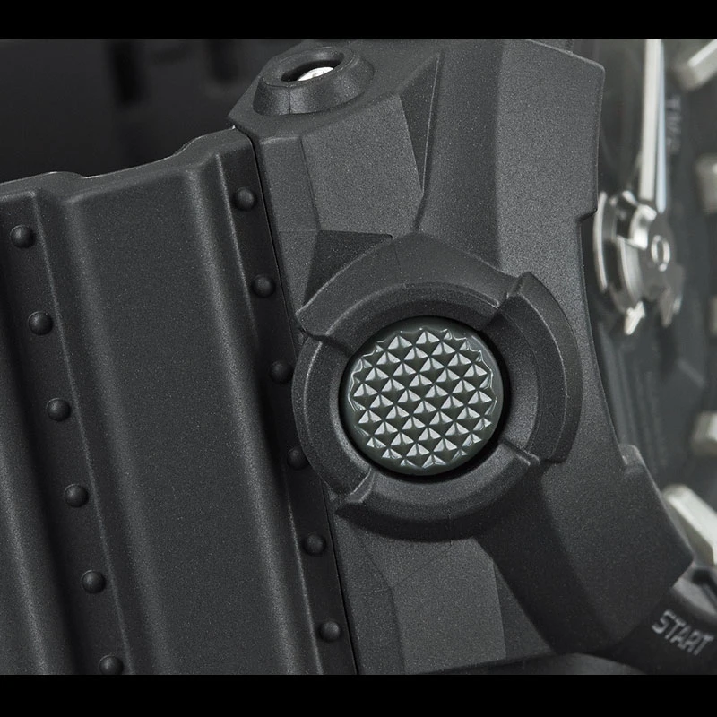 A front button at 6 o’clock adds to the dynamic, leading-edge styling. The three color schemes of these models were carefully selected to reflect the brand concept. Black-and-red, black, and red capture the spirit of toughness these models are designed to represent.