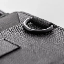 Designed onto the face of the wallet is a zipper pouch to store your loose bits, like coins, memory cards, jewelry, guitar pics, etc. Also built into the wallet is a flip out D-ring to tether and attach keys, paracords, lanyards, chains etc.