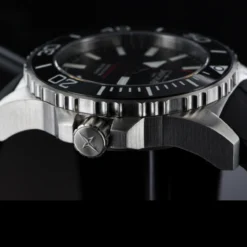 With the manual helium safety valve, a controlled pressure equalization is ensured for the watch when surfacing. The valve at the 10 o’clock position has been technically optimized and is now clearly recognizable by the helium symbol on the crown.