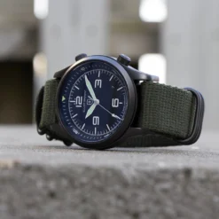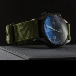 This version, the Elliot Brown Canford Black Dial Webbing Strap features all the utilitarian functionality of Canford with anti glare matt PVD case, high contrast hands, bright SuperLuminova and textured dial. The strap is made from custom made Nato style webbing.