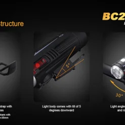 - New-type quick-release bike mount for easy and secure adjustment of the light direction