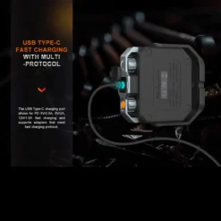 - Works as a power bank with output via USB-A or USB-C