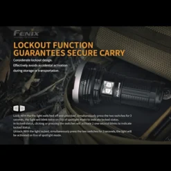 - Lock out function to prevent accidental activation. Press both buttons simultaneously for 3 seconds to lock or unlock the light from the off position