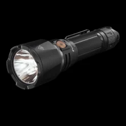 The Fenix TK26R torch has a maximum output of 1,500 lumens from the CREE Luminus SST-40 LED and can be powered by the included 18650 battery or by 2xCR123 (not supplied) in an emergency situation. The flashlight is rechargeable via a USB Type-C charging interface with a charging port towards the head of the light, please note this is only available when using an 18650 li-ion cell and must not be attempted if the CR123 cells are in use.