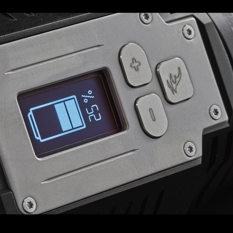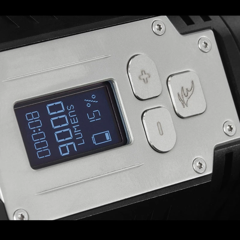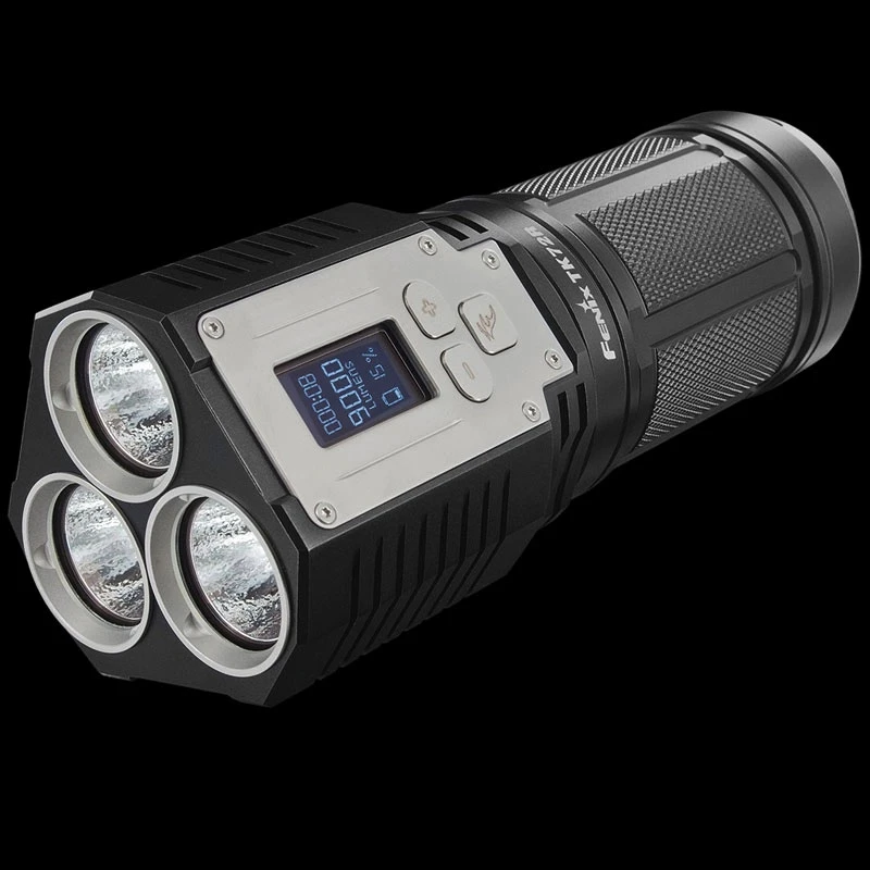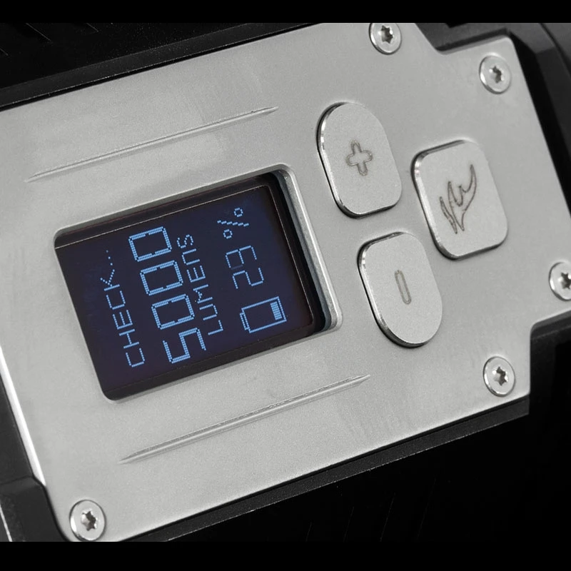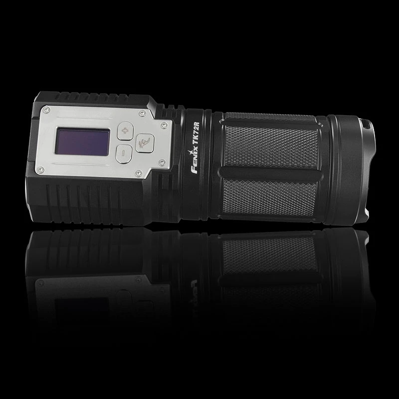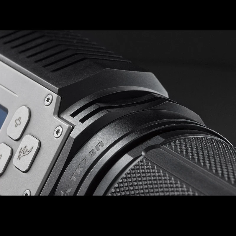 The Fenix TK72R is a premium rechargeable product with outstanding quality and performance. 3 x Cree XHP-70 LED’s with a total of 12 cores turn night into day with a maximum of 9000 lumens output. The large OLED display is linked to an intelligent processor and constantly shows the current brightness, remaining run time and battery level so you always know how much charge is remaining. Press the plus button and watch the light level increase along with the screen info.