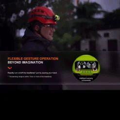 Fenix WH23R is a compact, durable headlamp designed for tough industrial use. The light features a rotary switch to select lighting modes (spot – flood – both) plus a central push button to change brightness level / operate the wave sensor activate – deactivate functions.