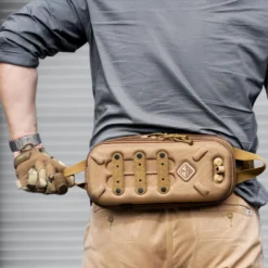 The pack-length is perfect for horizontal waist wear. Light aerated padding is quilted by military modular webbing for adding pouches/tools, etc. to the strap in either wear style. Top/bottom handles aid in pulling around or hanging up.