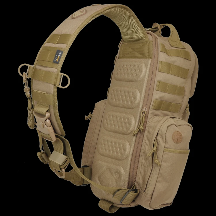 Being jammed in confined spaces for hours is an unfortunate part of the business for many professionals. Whether it’s a military unit in an a.p.c., a pilot in a cockpit, drivers in a HumVee, or a journalist in the back of a goat truck, they all have to bring their gear. And they all may need to ‘relocate’ in a hurry. This is the environment for which the Hazard4 Evac line of sling packs has been geared. They are slim shaped to be easily manoeuvred in crowds, or stored in vehicles/lockers, and are quick to take on or off. They are also ambidextrous, and unlike others in this class, are actually comfortable on the shoulder; The bottom strap clips from either the right or left lower corner and the padded section realigns itself ergonomically in the correct body-hugging direction. The bag can be rotated to the chest for on-the-go access, and all pockets are designed to face the user in this mode on either the right or left side. One-strap-carry also makes shouldering a long-gun comfortable – unlike a backpack.