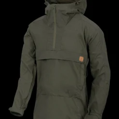 The whole jacket is highly wind resistant. The Woodsman Anorak has three pockets, including one kangaroo on the front with internal organiser. Sides are fully zippered up to the arm pits to provide easy don and doff. The side zippers can also be used as ventilation. Additionally the jacket has adjustable, hood with visor.