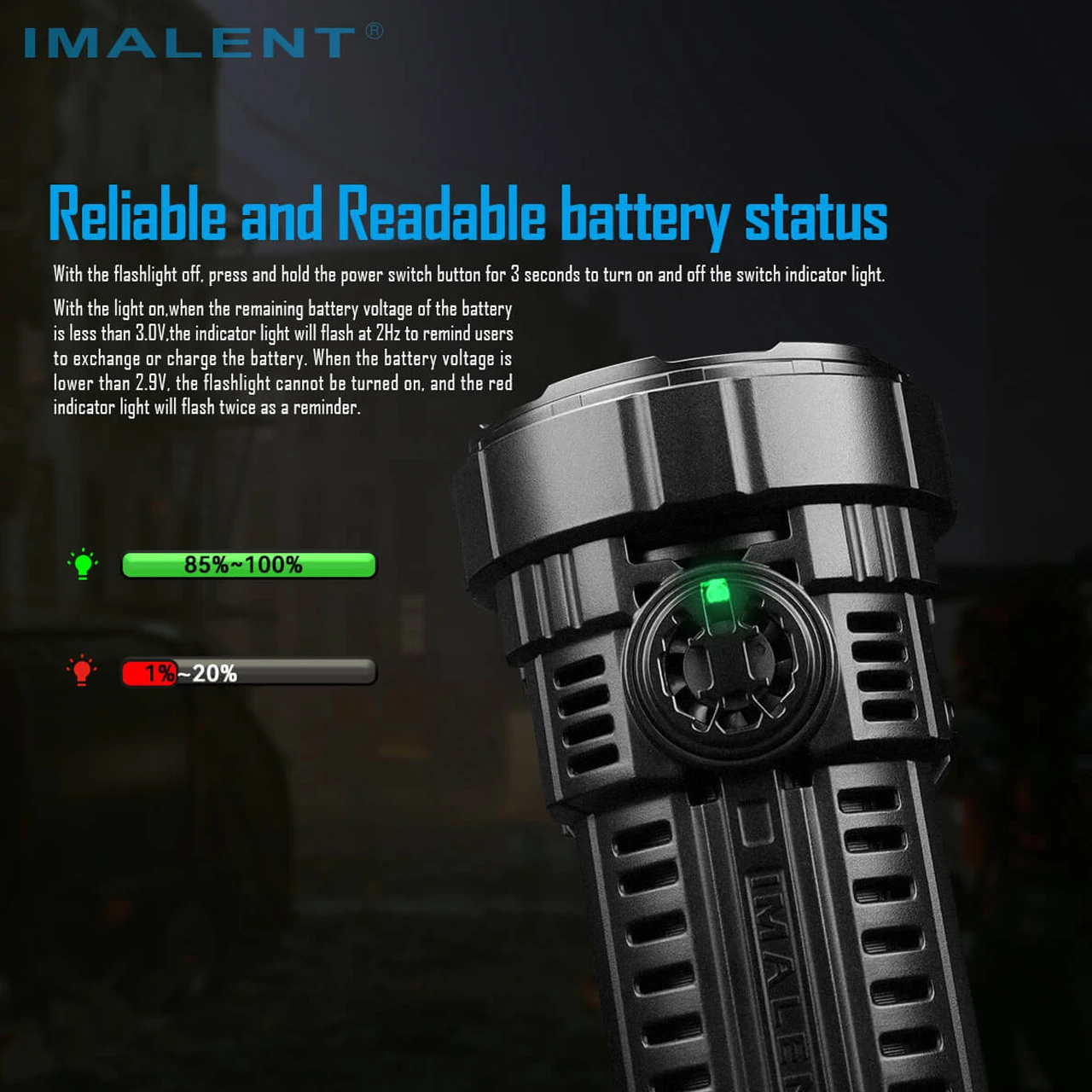 The Imalent RS50 is a rechargeable LED searchlight with a compact size that blasts a maximum output of a gigantic 20,000 lumens and a maximum beam distance of 1,160 meters. The amount of light that the IMALENT RS50 flashlight emits is truly remarkable, a wide beam angle and strobe function are perfectly suited for Search and Rescue with eight pieces of American CREE XHP50.3 HI LEDs.