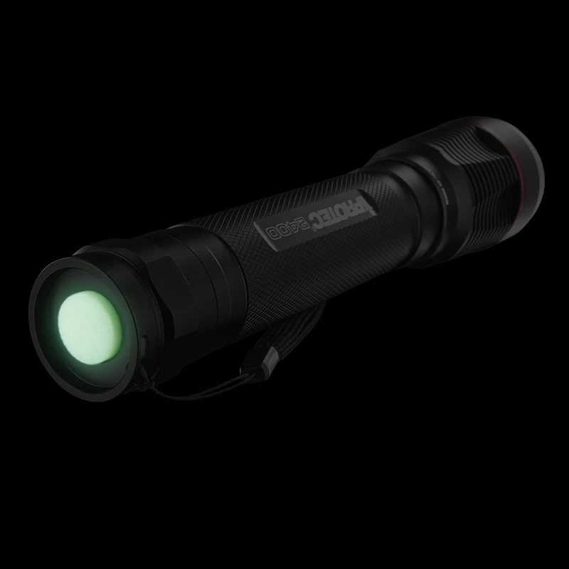 The iProtec PRO 2400 offers 2,400 lumens of high intensity light. Throwing a spectacularly bright beam over 346 meters, the PRO 2400 flashlight is dust-proof, waterproof and ready for any weather condition. The 4x zoom allows the beam to transform from focused spot to a wide flood beam. This light is packed with features including a 4x zoom, soft-touch, glow-in-the-dark button and 5x light modes (high, medium, low, strobe & beacon).