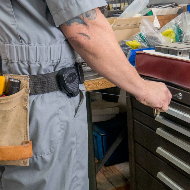 The Key-Bak Super 48 Plus Retractable Keychain was built for rugged use and hard work. The durable black polycarbonate case is impact resistant, and the retractable cord made with DuPont Kevlar fiber is guaranteed to outlast any other retractable key holders on the market. Attach your keys or small tools to the oversized split ring and secure the clip to your belt. When you need your keys just pull them out, when your done let them go and the built-in tether retracts back into place until you need them again. When you need a heavy duty key holder to secure a large number of keys, the SUPER48 Heavy Duty Retractable Keychain is your best choice.