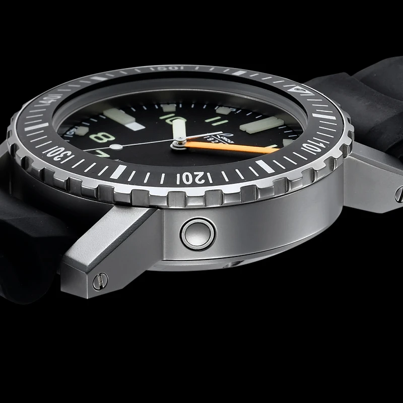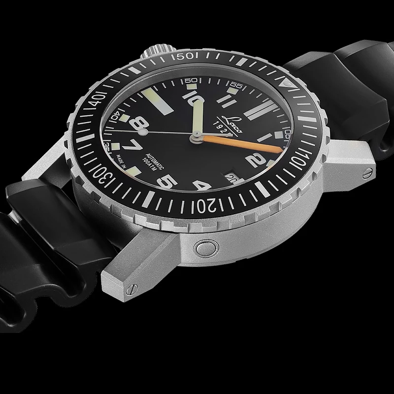 - Case: Matt stainless steel case with turnable bezel, double curved sapphire crystal with antireflecting coat, stainless steel screw back, 100 ATM, helium valve, antimagnetic, case diameter 45 mm, protected screw crown at position 9H/10H, 24 mm lug width