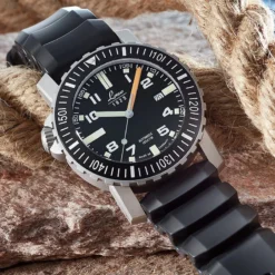 - Matt stainless steel case with turnable bezel, double curved sapphire crystal with antireflecting coat, stainless steel screw back, helium valve, antimagnetic, protected screw crown at position 9H/10H