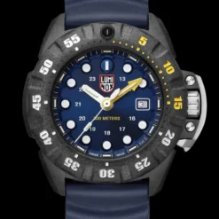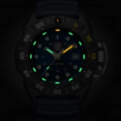 Luminox’s signature double security oversized knurled crown is present within the crown guards at 3 o’clock. On top of the dial there is scratch-resistant, coated and non-reflective sapphire crystal glass.