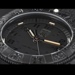 Luminox, known for its pioneering use of self-powered illumination technology, launches this addition to the nautical SEA series – the Sea Turtle Collection. This is Luminox’s lower-priced watch collection targeting a new set of consumers in the Outdoor Market. The Luminox Leatherback Sea Turtle Blackout 0301 has a low profile all black CARBONOX case with black numerals and a black rubber strap.
