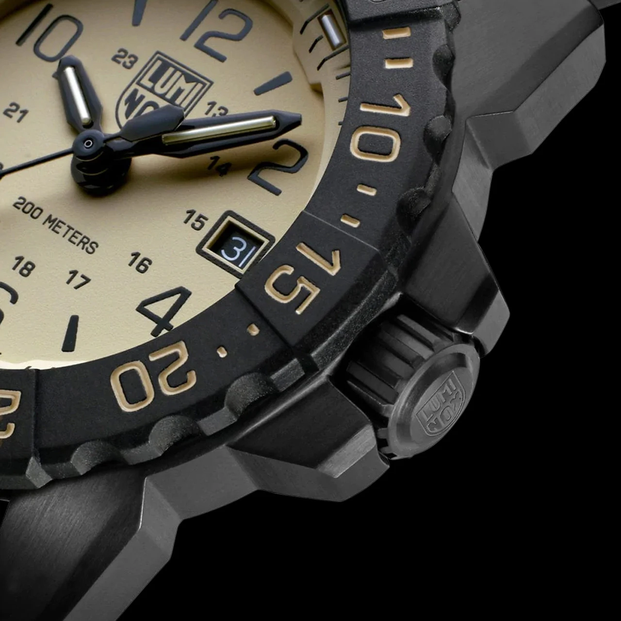The Luminox Navy SEAL Foundation watch combines durability with purpose. With the strap set, the watch provides versatility and functionality with two options rubber or nylon. The 45mm case in steel with its sand-colored dial and CARBONOX bezel makes for a handsome timepiece that reminds us of the call to duty every Navy SEAL answers.