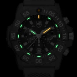 The Luminox Light Technology (LLT) ensures that all its watches have easy and immediate readability, and are Always Visible constantly glowing for up to 25 years. The Luminox Navy Seal Chronograph 3581 is a quality time piece with an impressive look and precise Swiss, quartz movement.