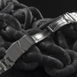 The Marathon 18mm Sterile Stainless Steel Bracelet features a superior floating double screw link system and a locking buckle for extra security. It also has a diver’s extension hidden underneath the clasp. It’s “Sterile”, without government markings.