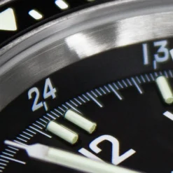 The JDD uses self-contained tritium gas tubes to ensure constant visibility in low light situations. A tritium gas tube is placed on each hour marker and on all hands. MaraGlo paint is used for the 12 hour bezel marker. Tritium tubes are self-illuminating gas tubes which contain an isotope of hydrogen, meaning they will not dull down in brightness like normal photo-luminescent paint which requires an external light source to create a glow.