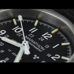 Inspired by the Marathon GG-W-113 field watch used throughout the 1980s by the US Army, the Marathon General Purpose Mechanical in Stainless Steel revives this vintage style with an update of modern materials and standards. The Marathon General Purpose Mechanical in Stainless Steel is manufactured from 316L surgical grade stainless steel with a satinized graphite grey finish, giving the look of a vintage field watch with the proper functionality and durability of a modern one. The crystal (glass lens) of the Marathon General Purpose Mechanical in Stainless Steel is made from sapphire, as sapphire crystals are the ultimate in scratch resistance, overall durability, and clarity of dial viewing, essential factors for military personnel. To assist in low light viewing, the dial of the Marathon General Purpose Mechanical in Stainless Steel uses tritium tubes for the hour indices as well as hour and minute hands. Tritium is a self illuminating gas which will provide a 24/7 glow without the need for charging by an external light source.