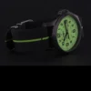 The General Purpose Quartz uses non-tritium Maraglo luminous markings when, exposed to a light source will glow in the dark. This version is the Sage Green “No Government Markings” (NGM) edition and has no date window.