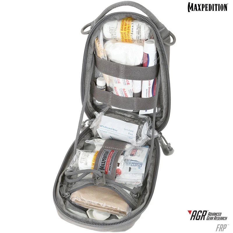 The FRP First Response Pouch is an updated interpretation of the traditional blow-out medical pouch. It has an interior paracord adjuster used to set the angle of opening for the main compartment. The inside is equipped with elastic straps and pockets for organizing first aid essentials. It comes with two (2) matching TacTie® PJC5™ Polymer Joining Clips for modular attachment to any AGR or legacy pack.