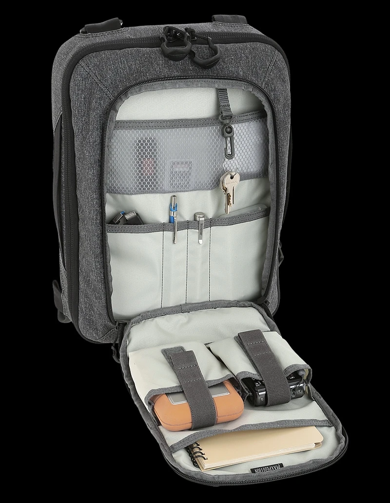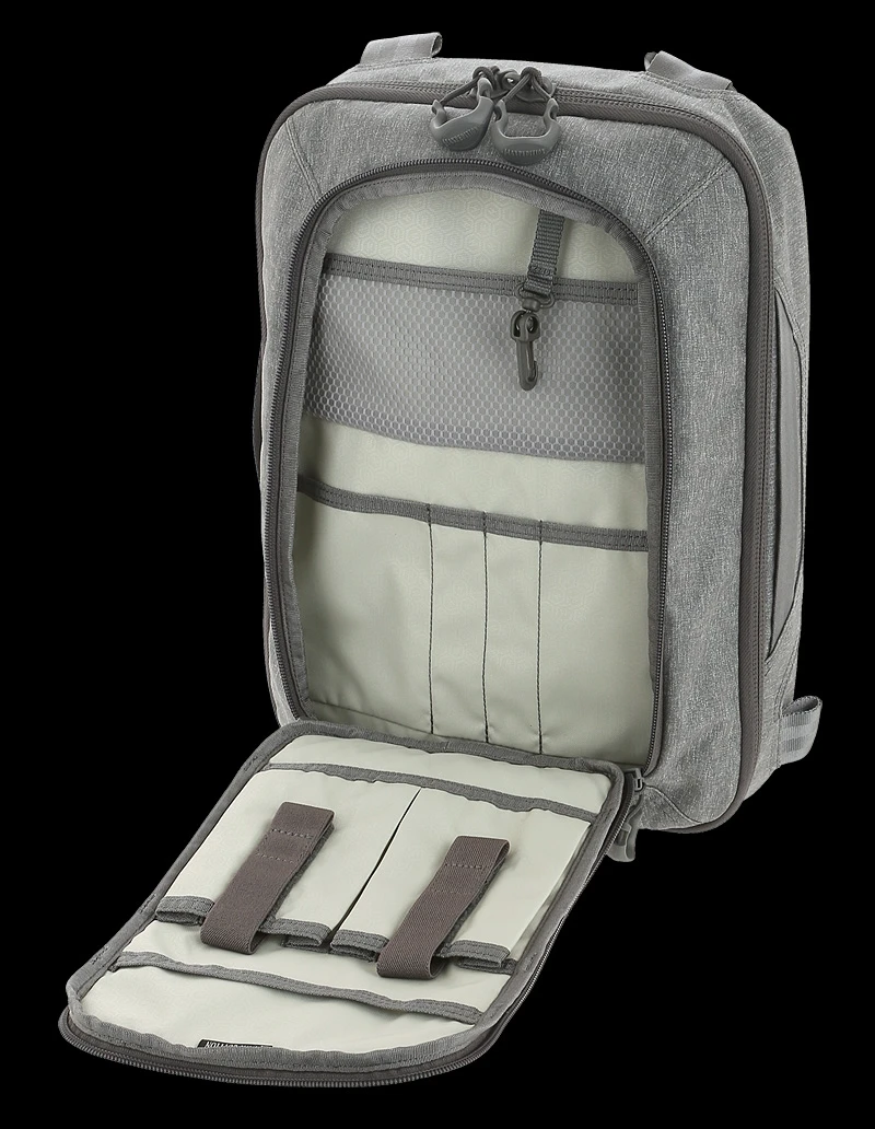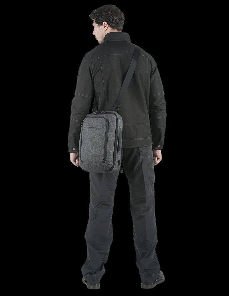 The larger of two available sizes, the Maxpedition Entity Tech Sling bag has a strap that may be positioned by the user for right or left side carry, and may also be easily changed from a sling bag to a shoulder bag. A padded main compartment with lockable zipper sliders contains a padded 13″ laptop/tablet compartment accessible from either side. Additionally, there is also 2-way access to a fully loop-lined rear compartment. A Security Lockout Strip is included for safety.