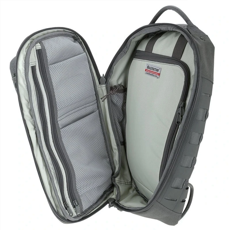 The Maxpedition Gridflux v2.0 is a sling pack with a reinforced padded shoulder strap that can swivel from your back to your front in the blink of an eye giving you access to all your vital kit. A fleece-lined pocket is featured on the front of the pack to store fragile items such as sunglasses or a point-and-shoot camera as well as a larger compartment for an abundance of EDC items. The main body of the bag is spacious and strong.
