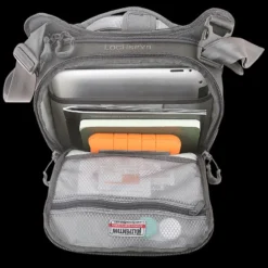 The Maxpedition LOCHSPYR (pronounced “LOCK-SPIRE”) is a crossbody shoulder bag optimized for carry. The rear CCW compartment is fully loop-lined and has an 16 inch U-shape zipper opening. The main compartment has a padded pocket sized to fit most tablets. There is an adjustable reinforced seatbelt webbing shoulder strap with quick release buckle and padded shoulder pad.