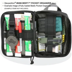 Maxpedition beefed up the FATTY POCKET ORGANIZER for increased capacity. The Beefy Pocket Organizer is the largest of its kind with optimum interior space for standard flashlights, hand tools, large knives, 16OZ bottles, heavy cables and other fuller-sized gear. A full clamshell opening reveals a hefty main compartment, containing 15 elastic dividers and 2 large slip & zippered pockets. This portable utility carry is perfect for big jobs and can be dropped into your Maxpedition bag or attached to its exterior PALS webbing for extended travels.
