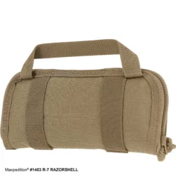 The Maxpedition RazorShells are protective cases that store one folding knife, fixed blade knife, or anything else that will fit inside and require the highest level of protection. These bivalves are lined with two opposing layers of supple, non-absorbent, non-scratching faux shearling separated by 1/8 closed cell foam for shock resistance. Internal elastic bands provide additional security while external elastic bands retain a knife sheath or paperwork. The RazorShell cases open and close by a full length YKK-10 zipper with paracord pull. Transport using the integral heavy duty carry handle. The R7 is great for most folding knives, sports watches, a pair of shades, PDA, iPOD, car stereo face plate, etc. Internal dimensions: 7 in x 3 in External empty dimensions: 8 in x 3.5 in x 1 in