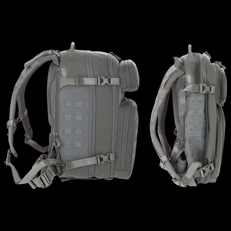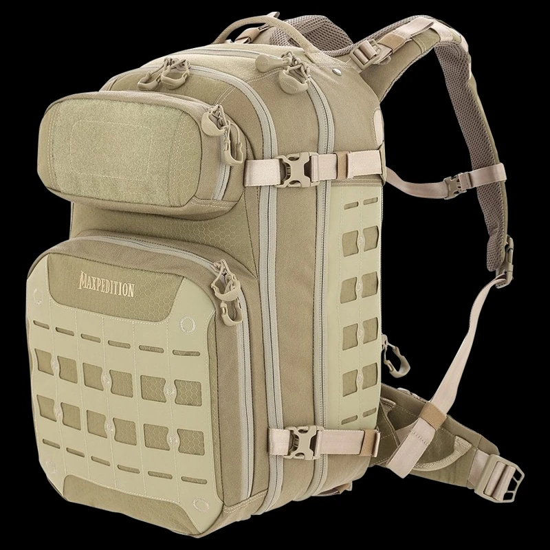 To balance the 30% increase in capacity, a padded load-bearing waist belt is added for comfort. Larger size also translates to more exterior AT.tachment LA.ttice S.ystem (ATLAS) surfaces for modular addition of specialized accessories such as admin, first aid or hydration pouches. In Maxpedition’s quest to build the best mid-sized zippered frameless pack possible, they use heavy duty materials, top quality components and reinforced construction methods to exceed the requirements of the most demanding military and law enforcement applications, thereby also satisfying the needs of adventure travelers and prepared citizens.