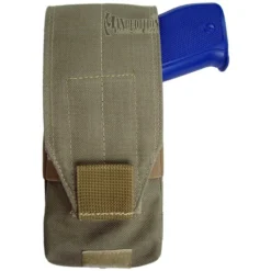 cover, or two(2) with lid tucked Works well as a modular pistol holster Lateral elastic retention Lid can fold and adhere to itself and stuffed