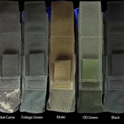 Designed to hold up to two (2) MP5 30rnd magazines with or without Magpuls and also fits Glock 9mm 33rnd magazines. Snug enough to hold one (1) mag per pouch. Lateral elastic retention Lid can fold and adhere to itself and stuffed behind mags Drainage grommets MOLLE compatible Six (6) rows of attachment webbing allows pouch to be positioned at different heights Attach using one 5″ TacTie™ Attachment Straps (sold separately) 1000-Denier water and abrasion resistant light-weight ballistic nylon fabric Teflon fabric protector for grime resistance and easy maintenance Triple polyurethane coated for water resistance High tensile strength nylon webbing High tensile strength composite nylon thread (stronger than ordinary industry standard nylon thread) Internal seams taped and finished Stress points double stitched, Bartacked or “Box-and-X” stitched for added strength