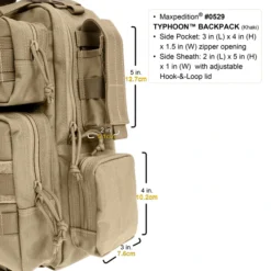 & organizer pockets Side Pocket: 4″ x 3″ x 1.5″ zipper opening Side Sheath: 5″ x 2″ x 1″ zipper opening Modular webbing: Front, sides and on shoulder