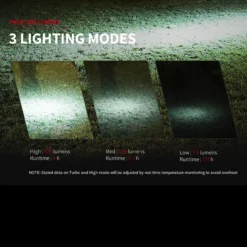 - Uses CREE XPL-Hi V3 LED, lifespan up to 50,000 hours