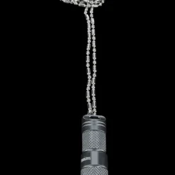 It’s supplied with a beaded neck chain, and keyring.