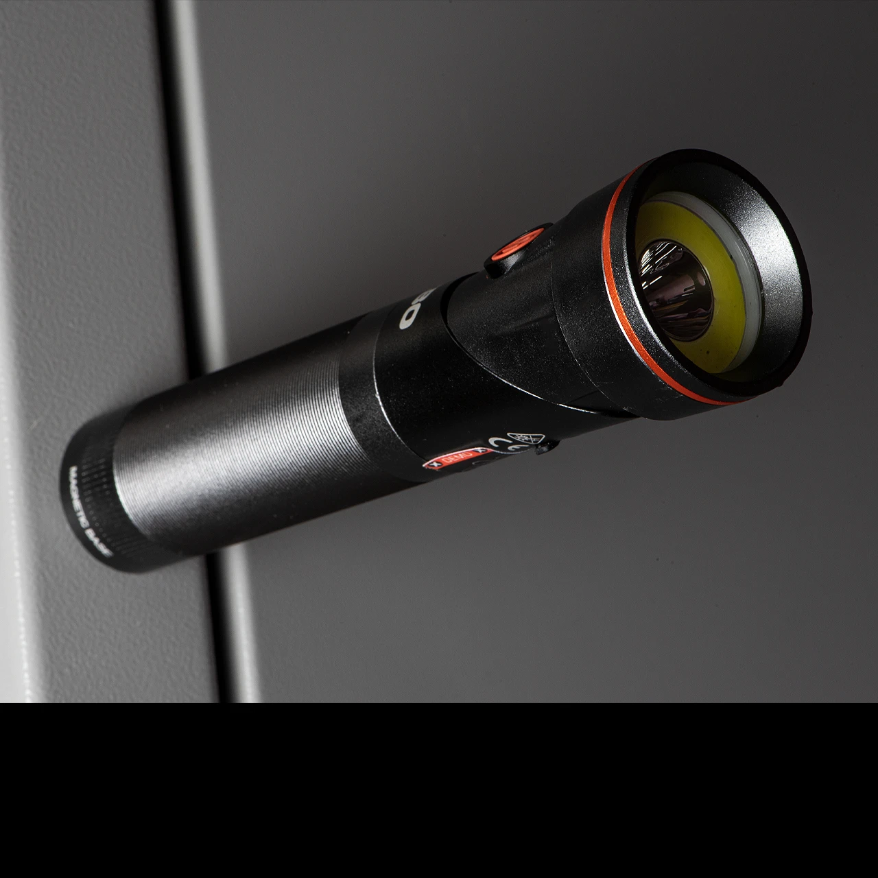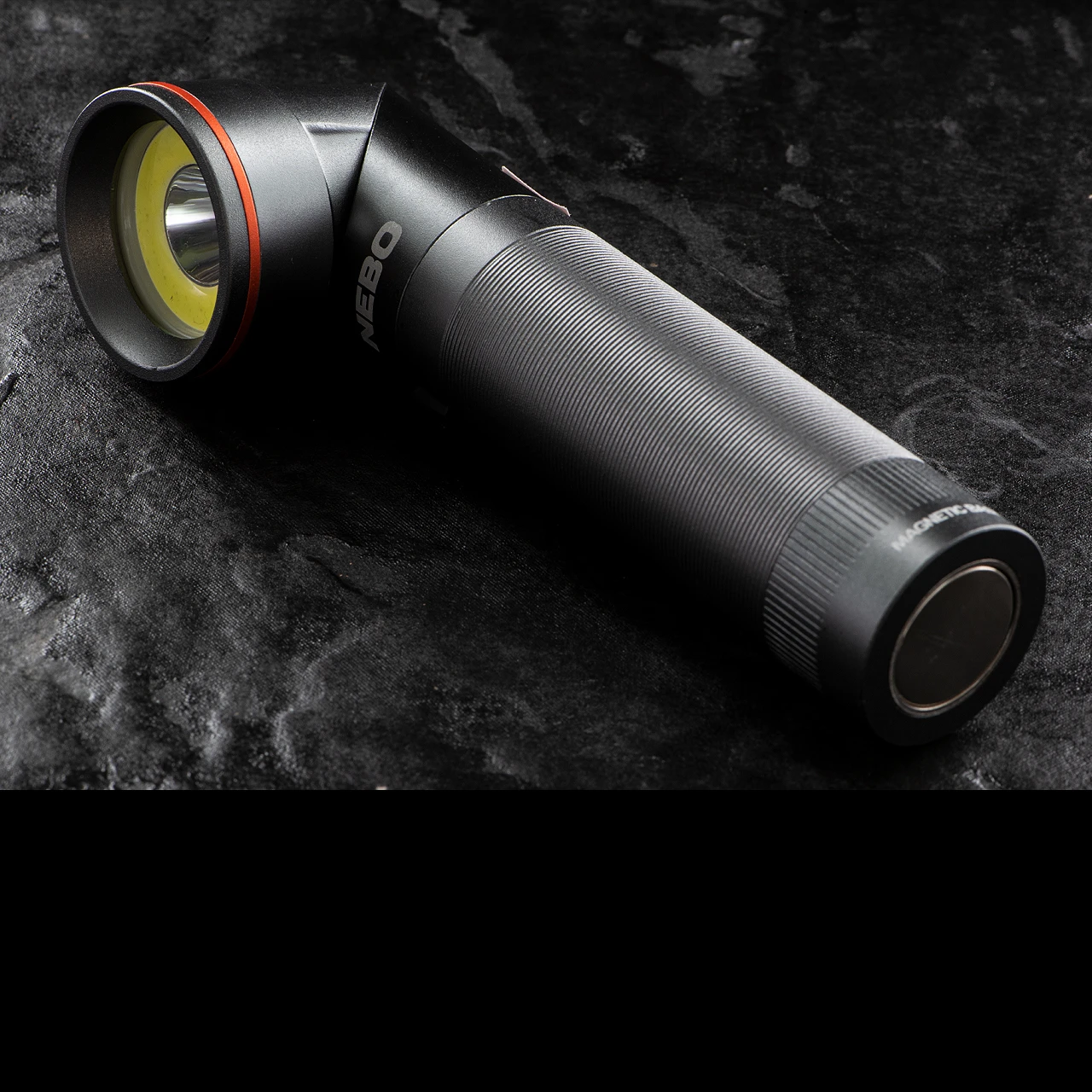 The Nebo Franklin Pivot features a high-powered 300 lumen COB LED flashlight and COB LED work light, 90° pivoting head, and a powerful magnetic base. The included rechargeable battery allows for up to 30 hours of operation in between charges.