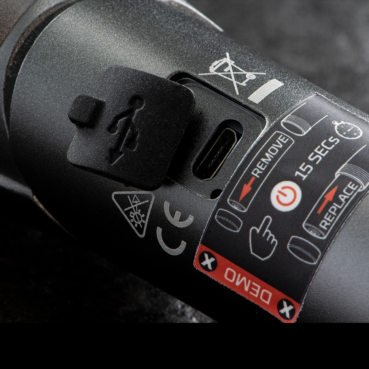 - Flashlight High: (300 lumens) 5 hours / 120 meters