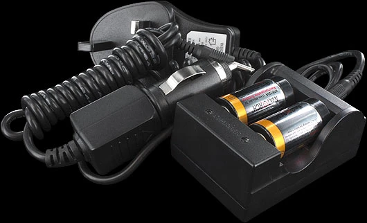 Nextorch 3V rechargeable batteries will recharge and discharge over 300 times within the charger and car adapter provided. The indicator LED is red when charging starts and turn green when batteries are fully charged. Full charge takes around 3 hours for two batteries together.