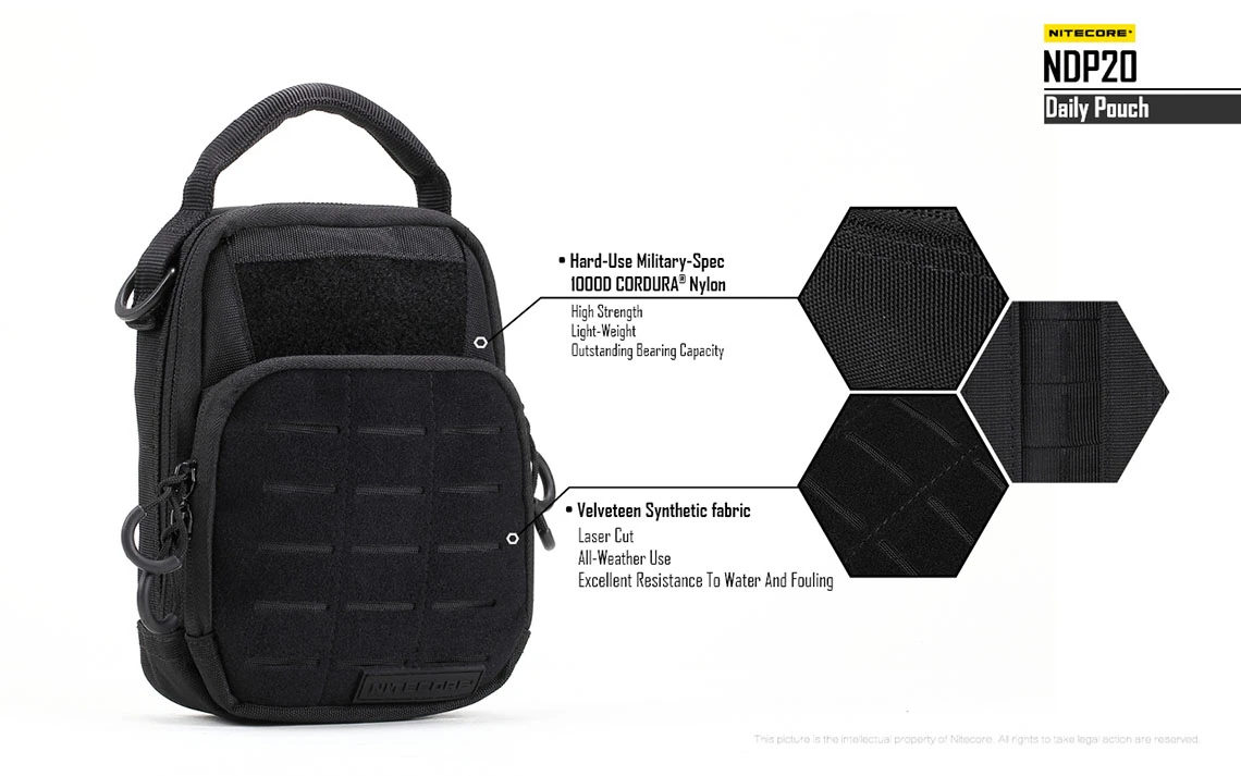 The Nitecore NDP20 pouch is the ideal everyday carry companion, with plenty of storage to keep your gear in one place. Made from hard wearing, military-spec nylon and with a velveteen fabric front, the pouch can be used anywhere in any condition.