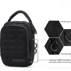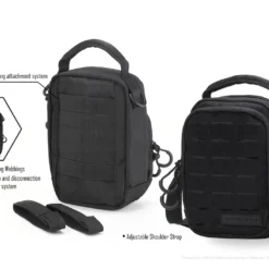 Designed for everyday carry and excursions, the NUP20 is fully ambidextrous and comes with an adjustable shoulder strap and two nylon joining webbings for modular attachments.
