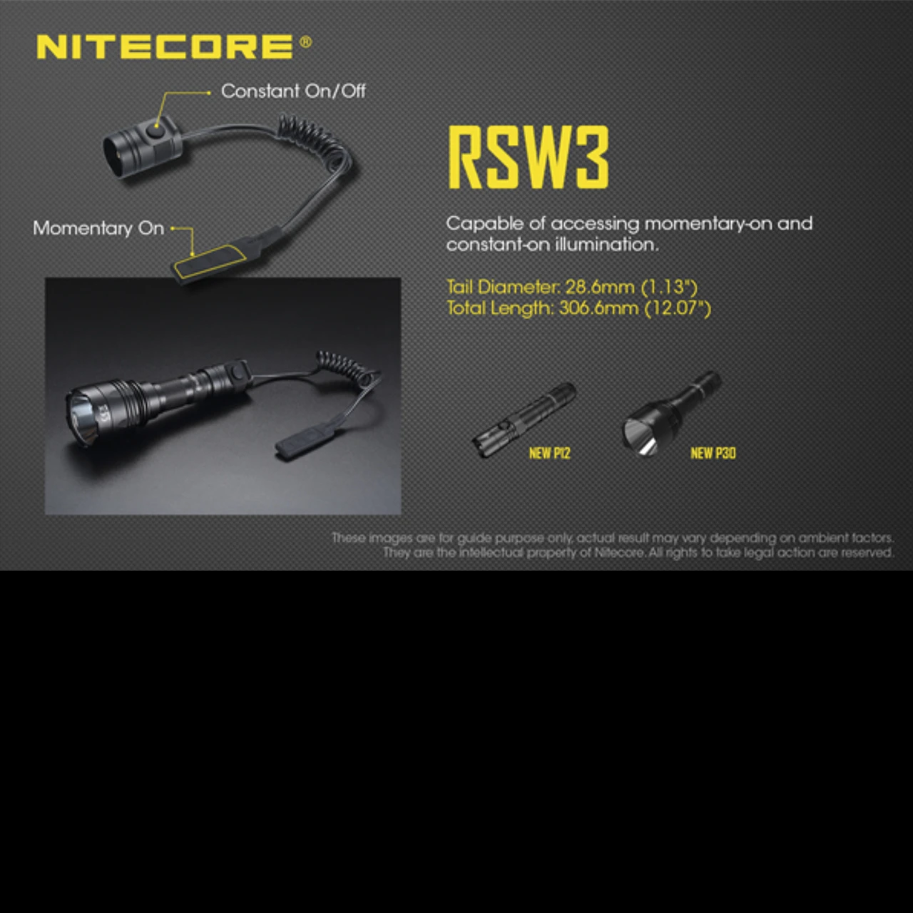 The RSW3 is compatible with the Nitecore New P12 and New P30 flashlights.